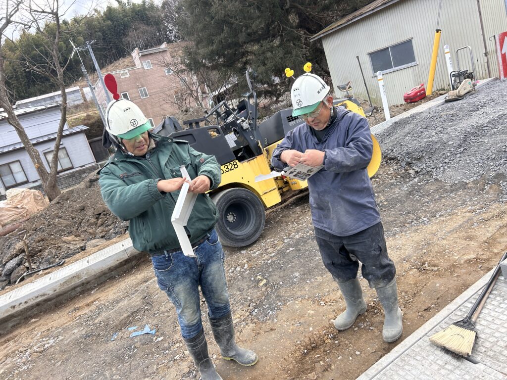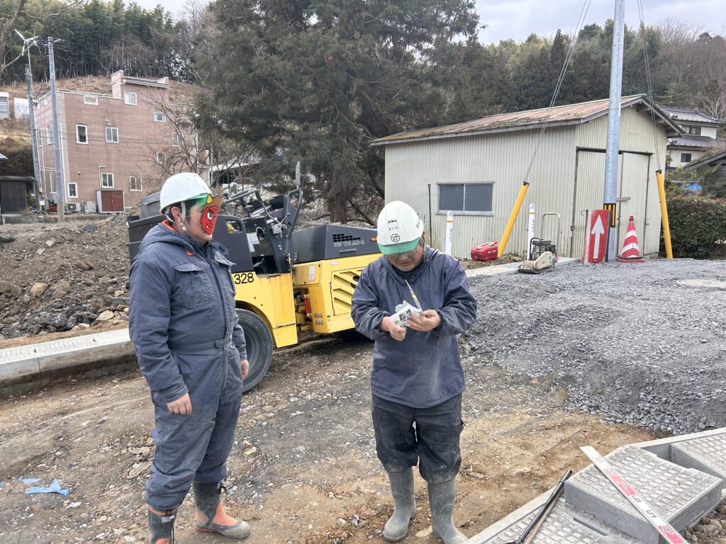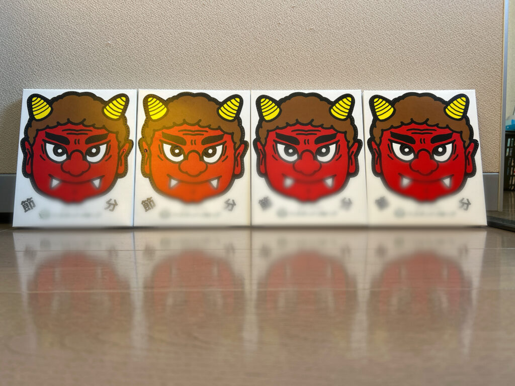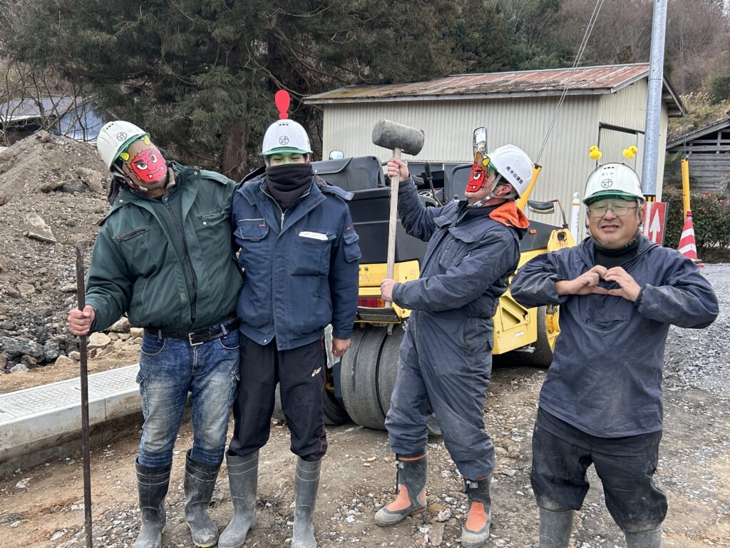 取引業者さまより鬼のお面を頂きましたので、社長と一緒に現場に潜むキケンな鬼を退治しました